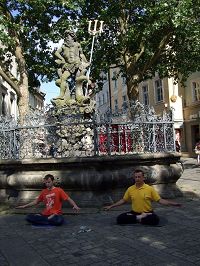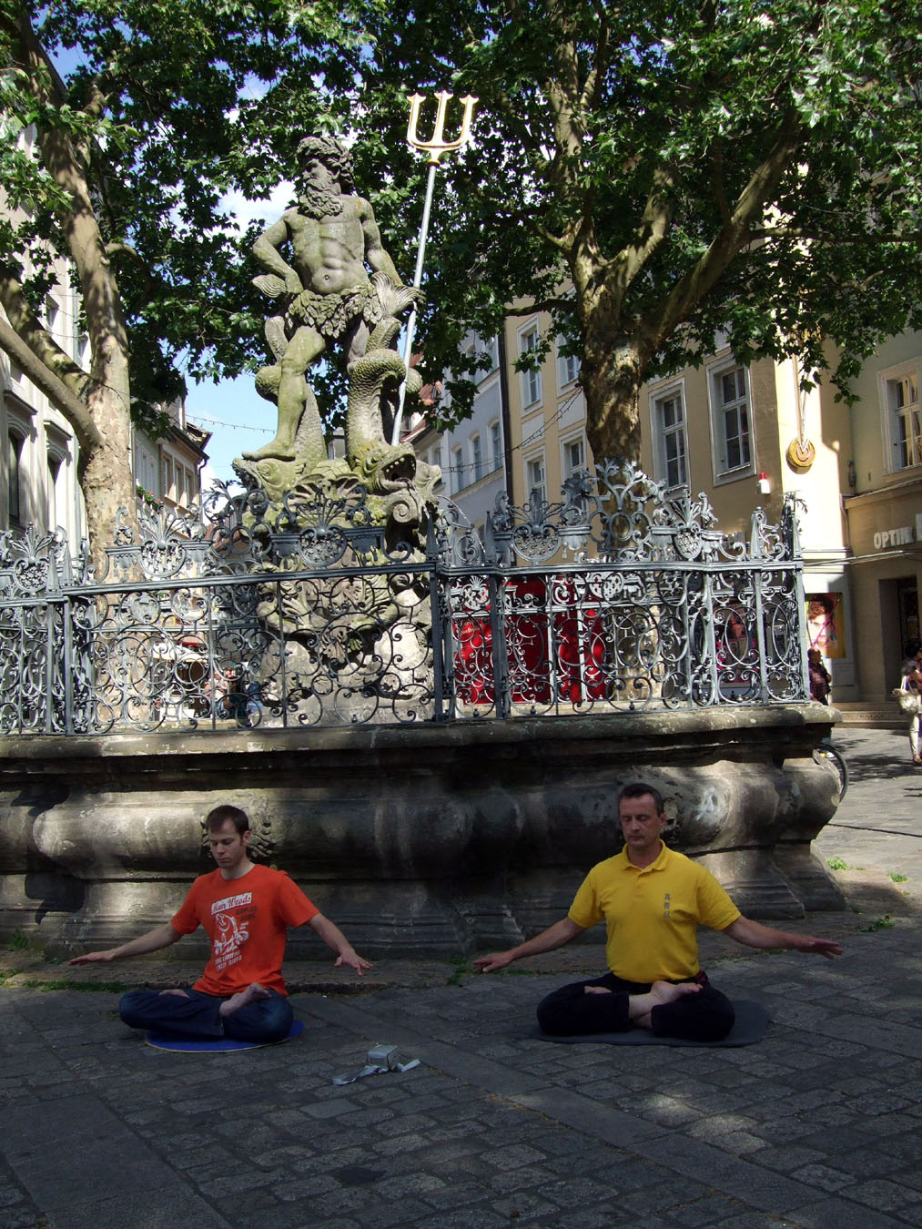 真相日这一天,这里的气氛胜似节日,前来了解真相、签名支持者络绎不绝。学员们在发资料、讲真相的同时,始终也有功法演示,同修们静静的伫立在三叉海神雕像前的小广场上,给这一著名旅游景点增添了特殊的光彩。