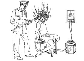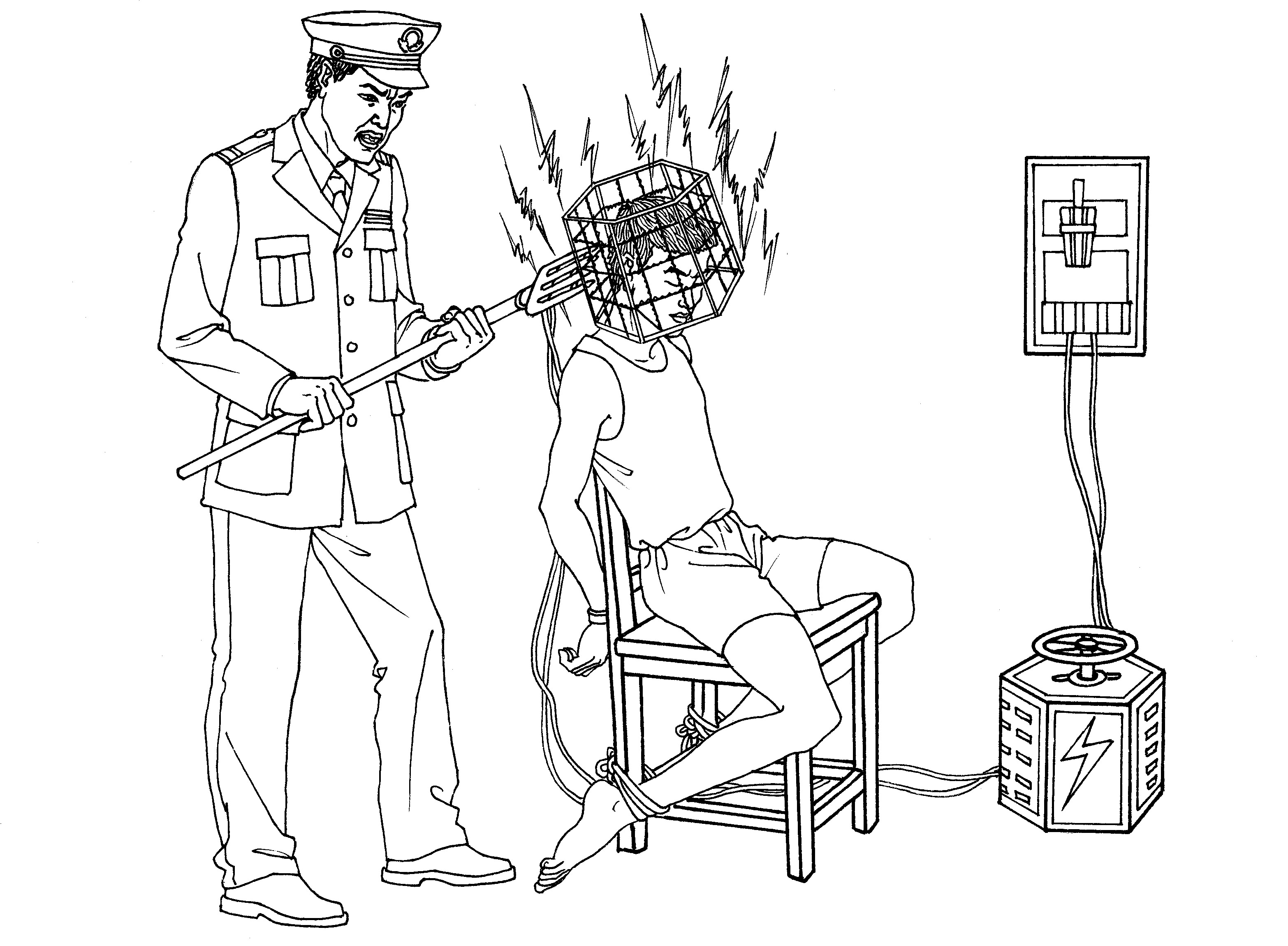 更为恶毒和令人发指的则是那些禽兽不如的恶警专门针对人口腔、生殖器和肛门进行的长时间电击,尤其是针对女学员乳房、阴部进行的电击和性虐待,则更是人类历史上最大的耻辱。