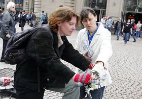 ![]() 法轮功学员在市中心新喷泉广场举办真相信息日 |