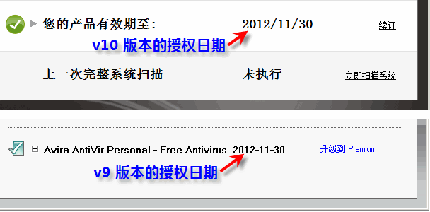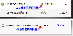 这些提示都可以忽略不管,丝毫不会影响v9或v10正常监控和杀毒,那仅仅是一个提示而已,过10秒钟左右就会自动消 失。按惯例在授权文件 hbedv.key有效的情况下,小红伞一般会自动延长用户的使用期限。只要授权日期在当前日期之后,就可以正常更新病毒库,授权日期可以在小红伞窗口底 部看到,如下图所示: