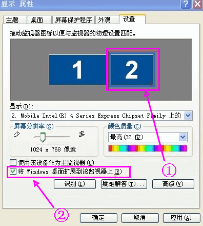 有时候可能需要从新启动一下电脑,如果从新启动电脑还不能正常显示,还可以将电视设置成一个外置的显示器,具体方法是:在电脑上对着桌面点右键 —-->点属性,再参考下面的设置图。
