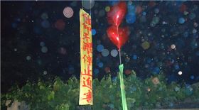 • 河北省正定县气球真相条幅惊现漫天五颜六色飞旋法轮