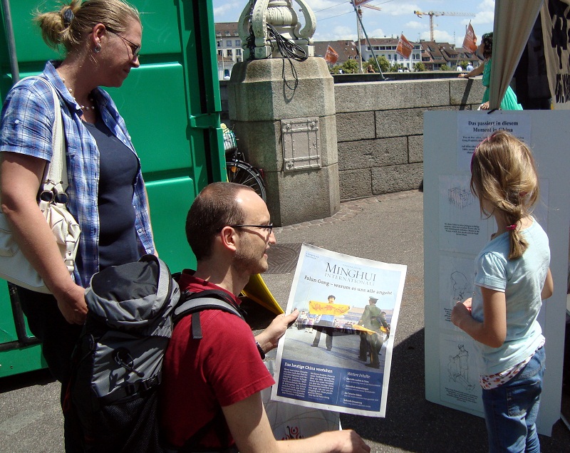 【明慧网二零一二年六月二十七日】二零一二年六月二十三日周六,法轮功学员在瑞士第二大城市巴塞尔(Basel)举办了“传真相 反迫害”信息日,向这个国际都市的居民和大量游客介绍法轮大法,并揭露中共十三年来对法轮功学员的残酷迫害。