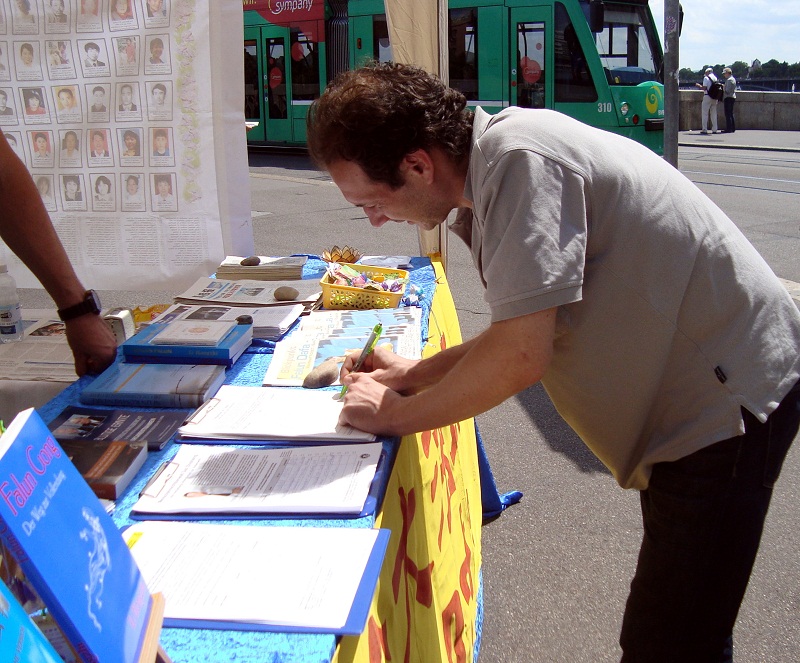 法轮功学员在瑞士巴塞尔举办“传真相 反迫害”信息日