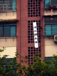 ▽ 二零一二年五月,湖北宜昌市葛洲坝各个单位,居民社区,在邪党葛洲坝集团公司六一零,葛洲坝反邪教协会指使下悬挂污蔑大法横幅。已知:葛洲坝房地产公司佳鸿办公楼门口,二公司大堰湾居委会云林小区办公楼门口,一公司金利源酒店背后肖家岗常家湾居委会门口,三江桥头居委会机电公司社区门口,毒害工区老百姓和世人。
