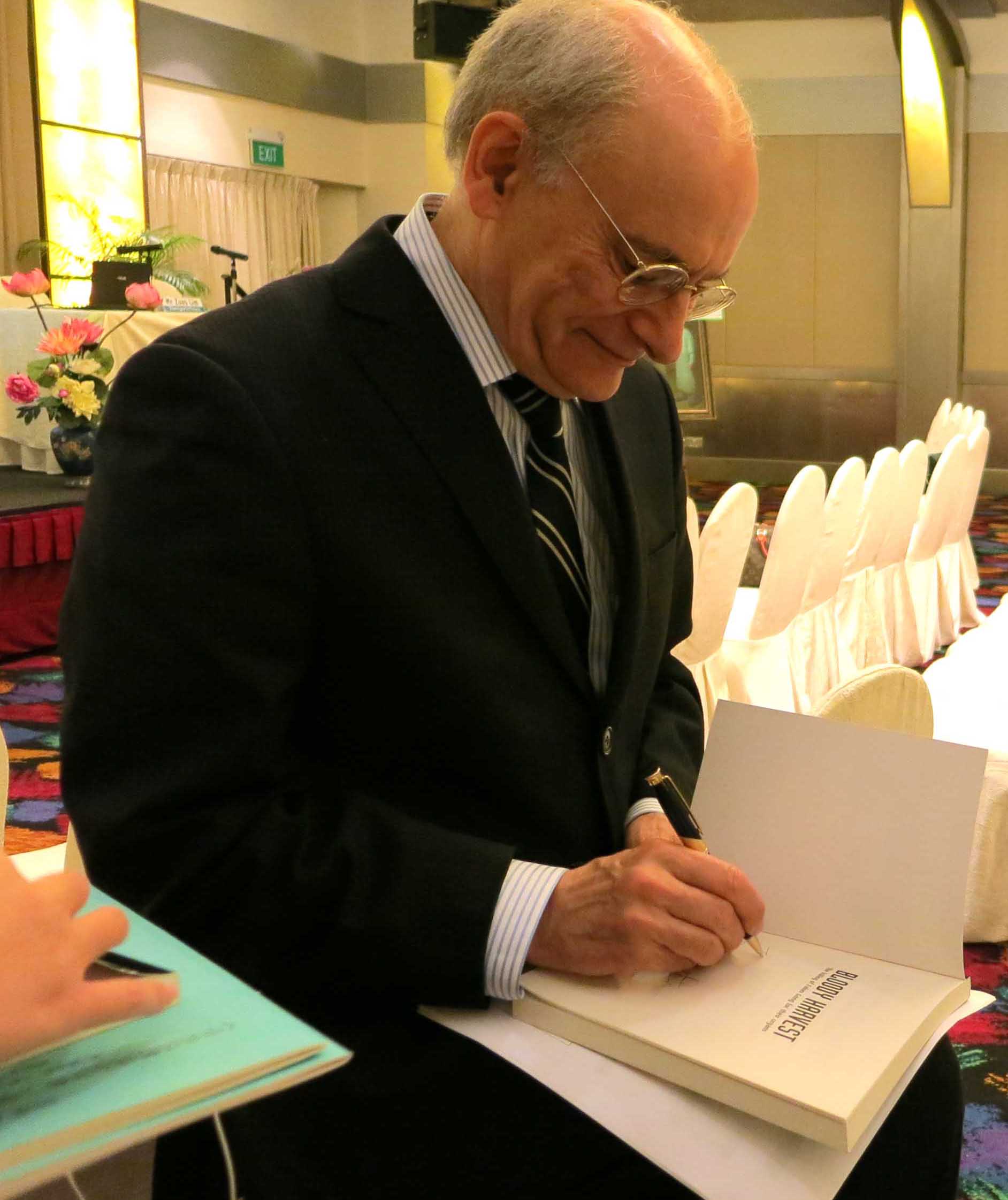 ![]() 大卫•麦塔斯为购书的读者签名留念。 |