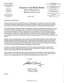 去年,我联合发起了国会第四一六号决议案,谴责中共迫害包括法轮功学员在内的良心犯,声援中国民众宣布脱离中共的退党运动。
