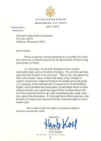 美国会参议员科尔致函声援法轮功反迫害(图)