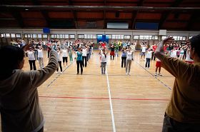 教完功后,中国学员用中文教孩子们念“真、善、忍” 和“法轮大法好”。当近百名孩子齐诵“法轮大法好”时,响亮清纯的童声响彻整个体育大厅,震撼人心,我们为能助师正法感到骄傲自豪。