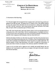 【明慧网二零一二年七月十二日】代表美国纽约州第十三区的联邦众议员麦克•格里姆(Michael Grimm)在二零一二年七二零前夕致信法轮功学员,表达他对法轮功学员的支持和鼓励。