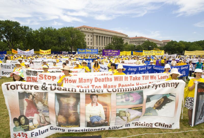 在近两小时的集会上,三位在国内遭受迫害的法轮功学员代表以自己死里逃生的经历,揭露了中共迫害法轮功学员的残酷。