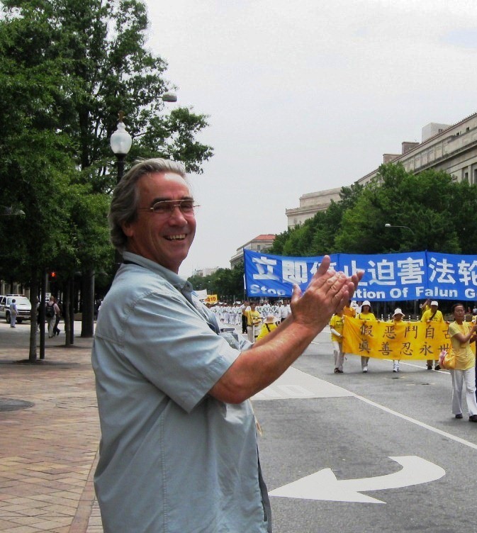 他说:“在整个游行中,我看懂了:这是一个平和的功法,祥和的一群人,但他们在中国是受迫害的。所以他们在这发出声音,呼吁停止迫害!他们没有伤害任何人,他们只是要求自由,他们应该有人权。我从心里祝福他们!”
