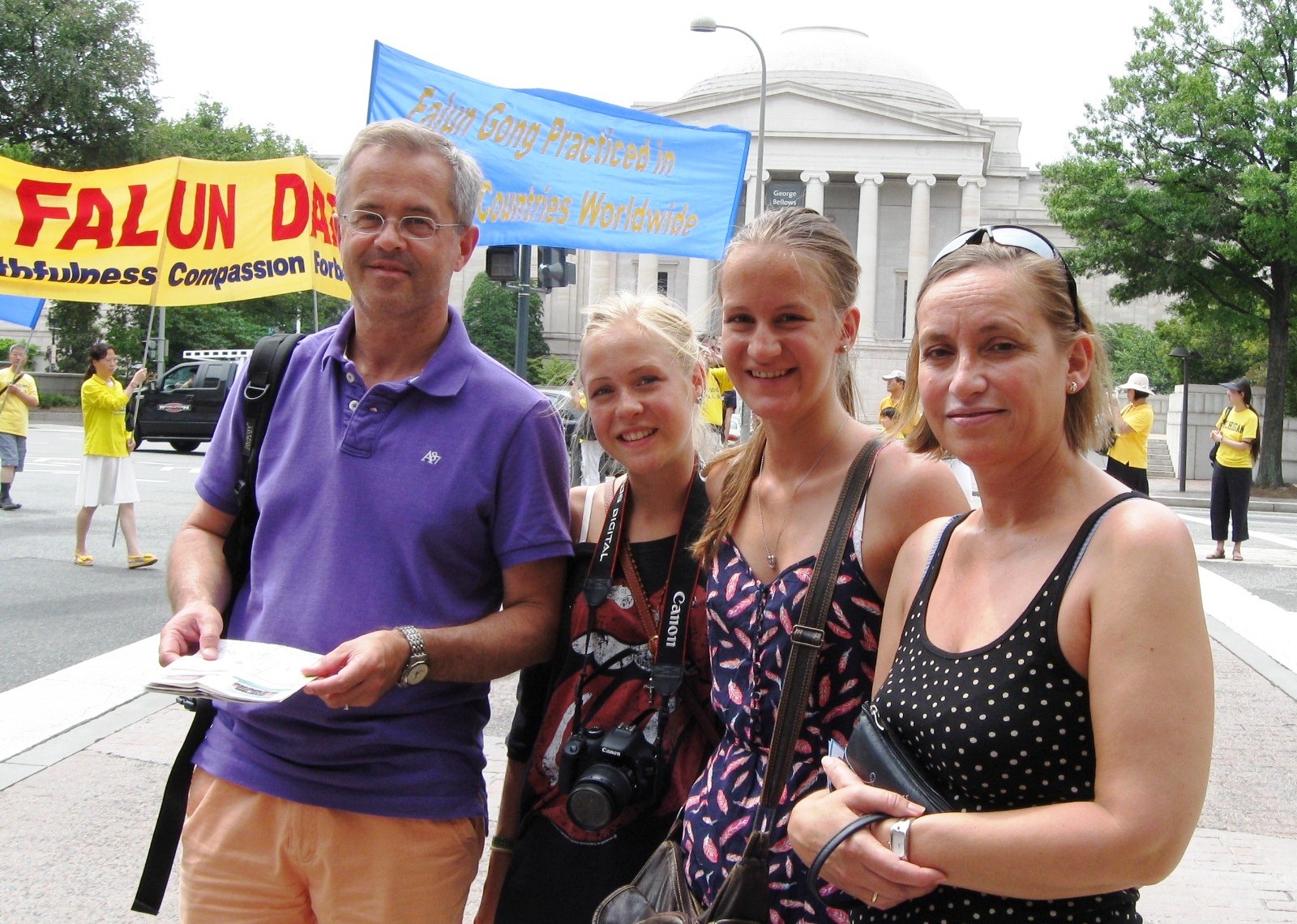 游客Ragnhild一家来自挪威,第一次看到法轮功的游行,Ragnhild手举着传单说:“非常祥和的游行,第一次看到,我们全家很幸运,在华盛顿DC得到这么好的信息,我们回去一定上网多了解。”