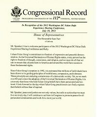 议长先生,我站在这里欢迎二零一二年华盛顿DC法轮大法修炼心得交流会和集会的参加者们。