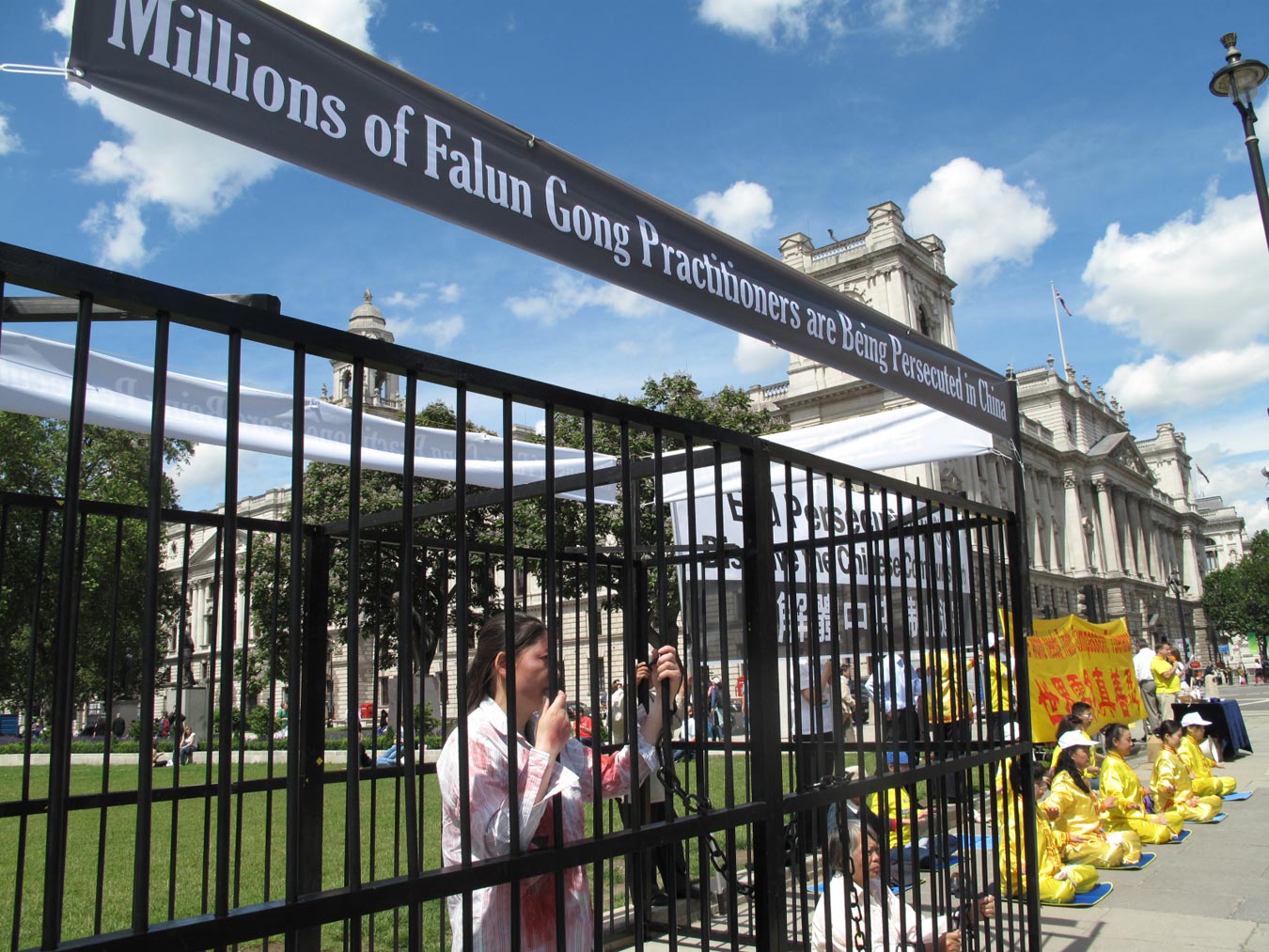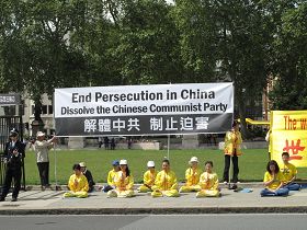 ![]() 法轮功学员在英国议会大厦前集会并演示中共酷刑,抗议中共迫害 |