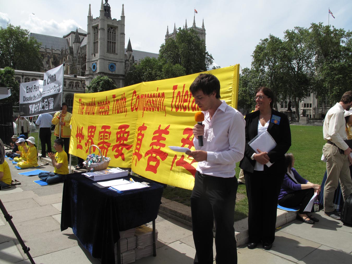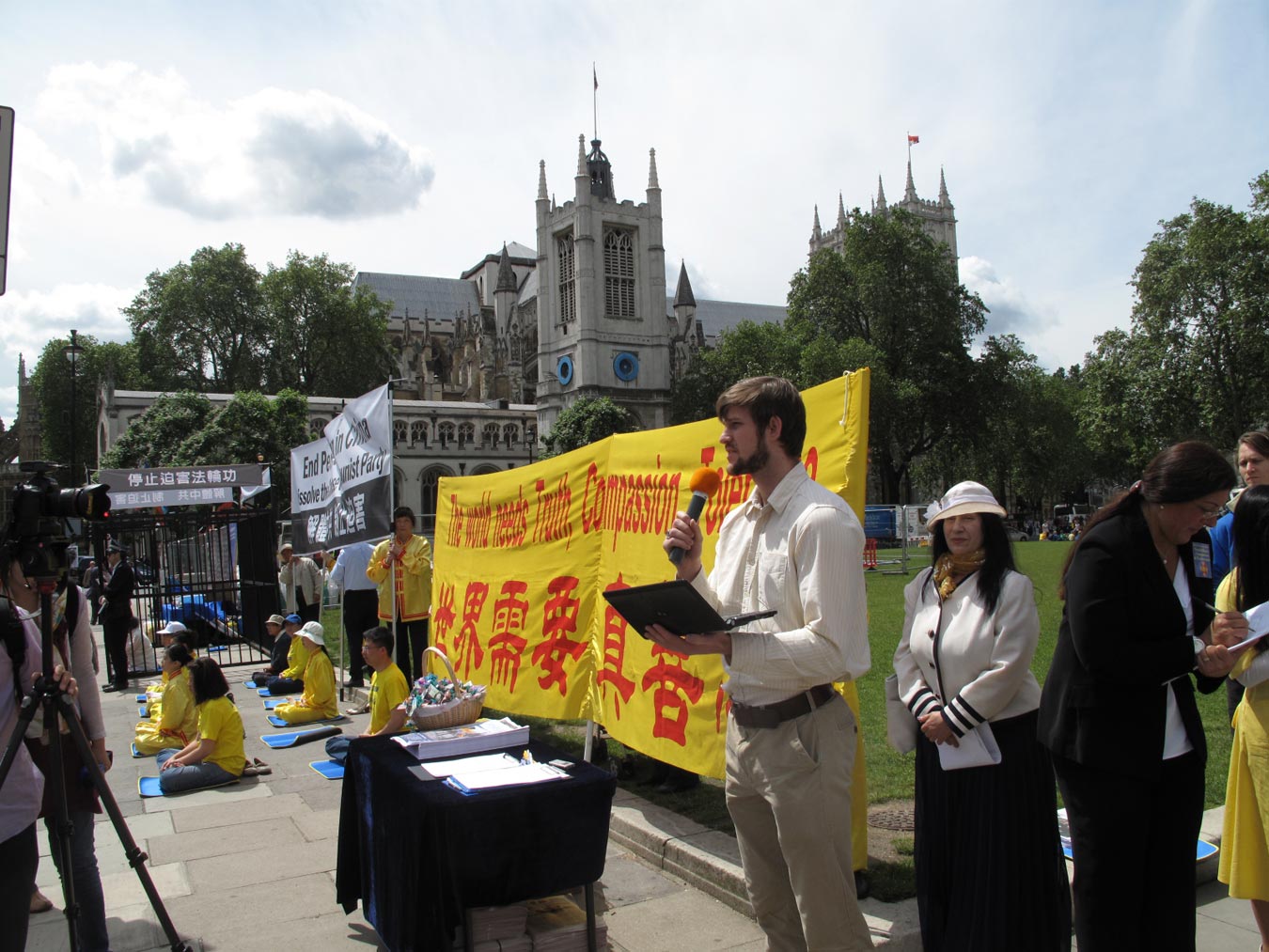 国际人权机构“全球基督教联盟”(Christian Solidarity Worldwide)代表爱德·迈勒思(Ed Miles)也到场声援并发表演讲。他在讲演中说道:“我们与法轮功站在一起,因为他们还在继续遭受严重的迫害,包括酷刑、谋杀和器官摘取等中共当局从事的恐怖行为。”