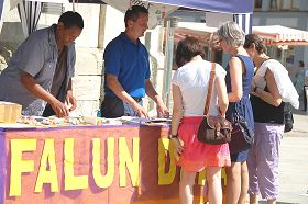 二零一二年六月三十日,德国雷根斯堡法轮功学员及其周边法轮功学员,在市中心老城广场(Neupfarrplatz)举行信息日,向观光客和当地民众揭露中共迫害法轮功学员的暴行,并介绍法轮大法的美好。