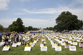 ![]() 葛敏在国会山“停止迫害法轮功,声援九评退党”集会上 |