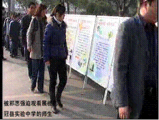 法轮功是教人向善的正法,中共才是害人的邪教,邪党颠倒黑白,把信奉“真善忍”的法轮功污蔑为邪教。为了营造迫害氛围,冠县“六一零”要在全县范围内开展“远离邪教健康人生”的所谓“警示教育月”活动,其实,是为了向广大民众灌输“法轮功是×教”的谎言。二零一一年五月二十七日上午,冠县“六一零”要员王勇和石学增在清泉中学教学楼前举行了其“启动仪式”,胁迫两千多名中学生参观污陷法轮功的展板,然后在诽谤法轮功的征签布上签名。恶徒王勇叫嚣这个活动还要进乡村、进社区、进企业,要长期坚持下去。