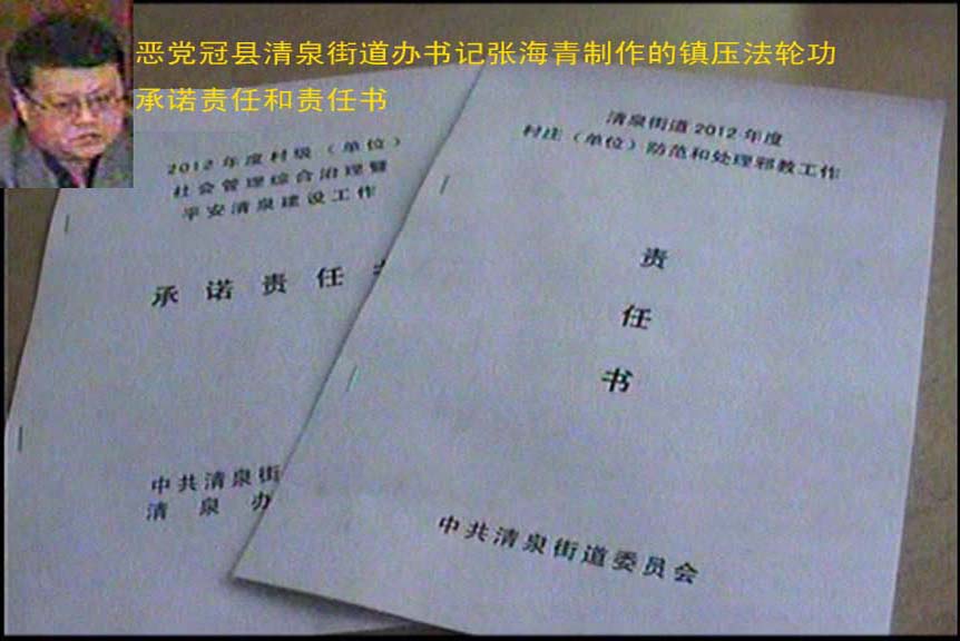![]() 冠县清泉街道委员会制定的迫害法轮大法责任书(复印件) |