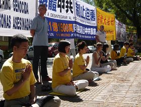 【明慧网二零一二年七月二十日】二零一二年七月十四日,西班牙法轮功学员聚集在中使馆前,和平抗议中共对法轮功长达十三年的残酷迫害,悼念被中共迫害致死的同修,呼吁社会各界共同制止迫害,法办迫害法轮功的元凶江泽民、罗干、刘京、周永康等。