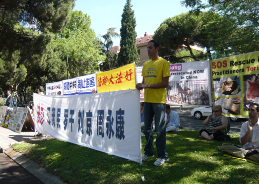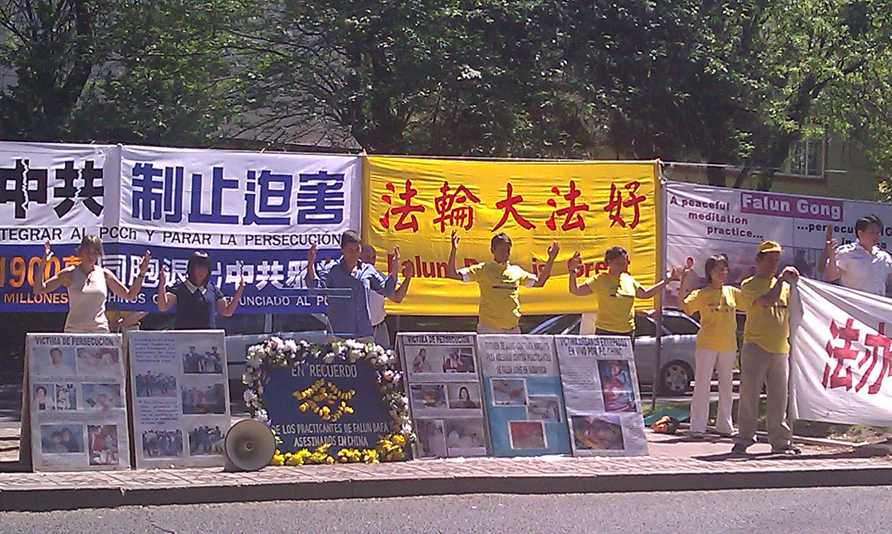 西班牙法轮功学员中使馆前抗议中共持续十三年的残酷迫害