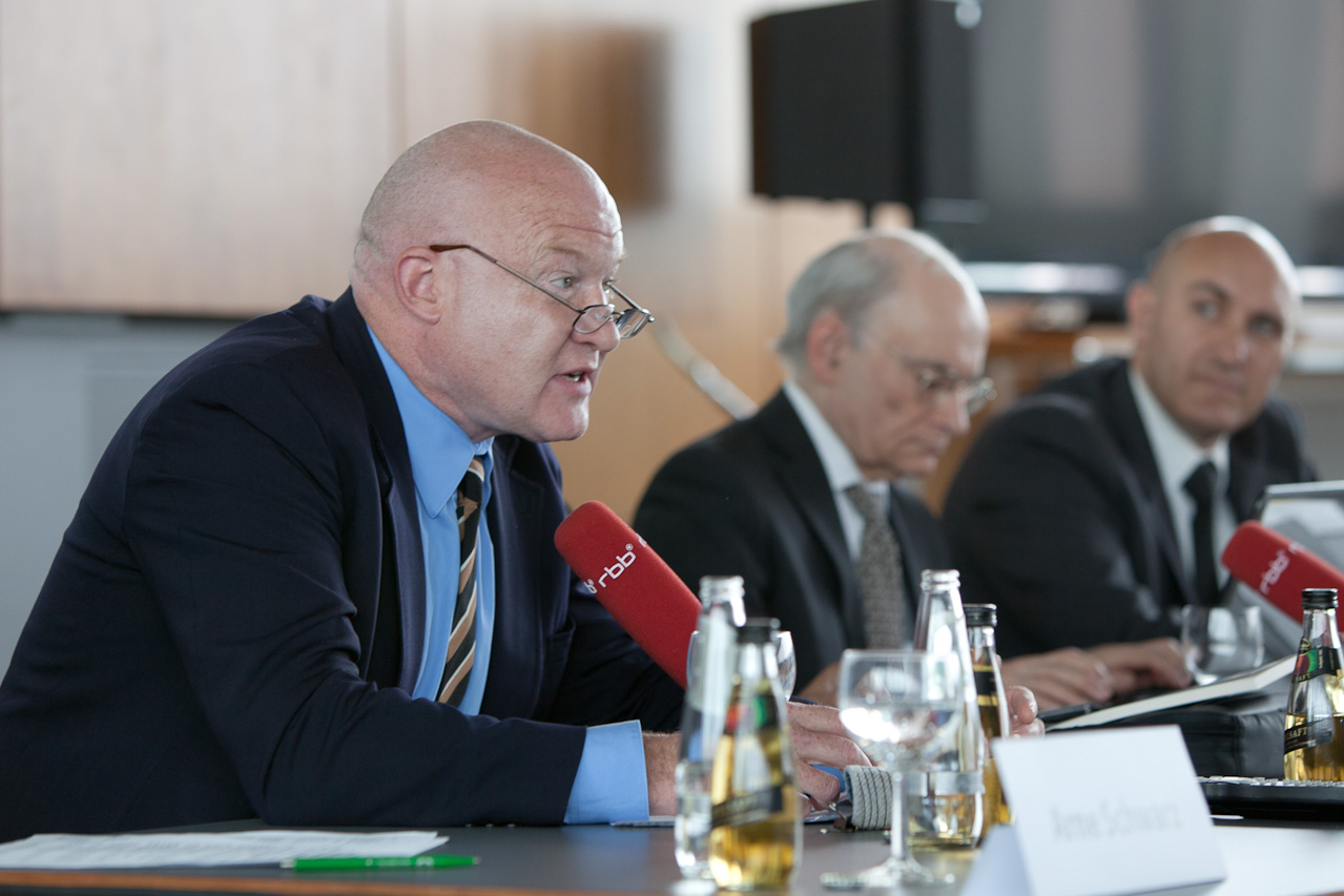 “在十字路口的移植医学” 研讨会于二零一二年七月十八日在柏林召开,图为(左起)美国作家葛特曼、加拿大律师麦塔斯和法国医生金。