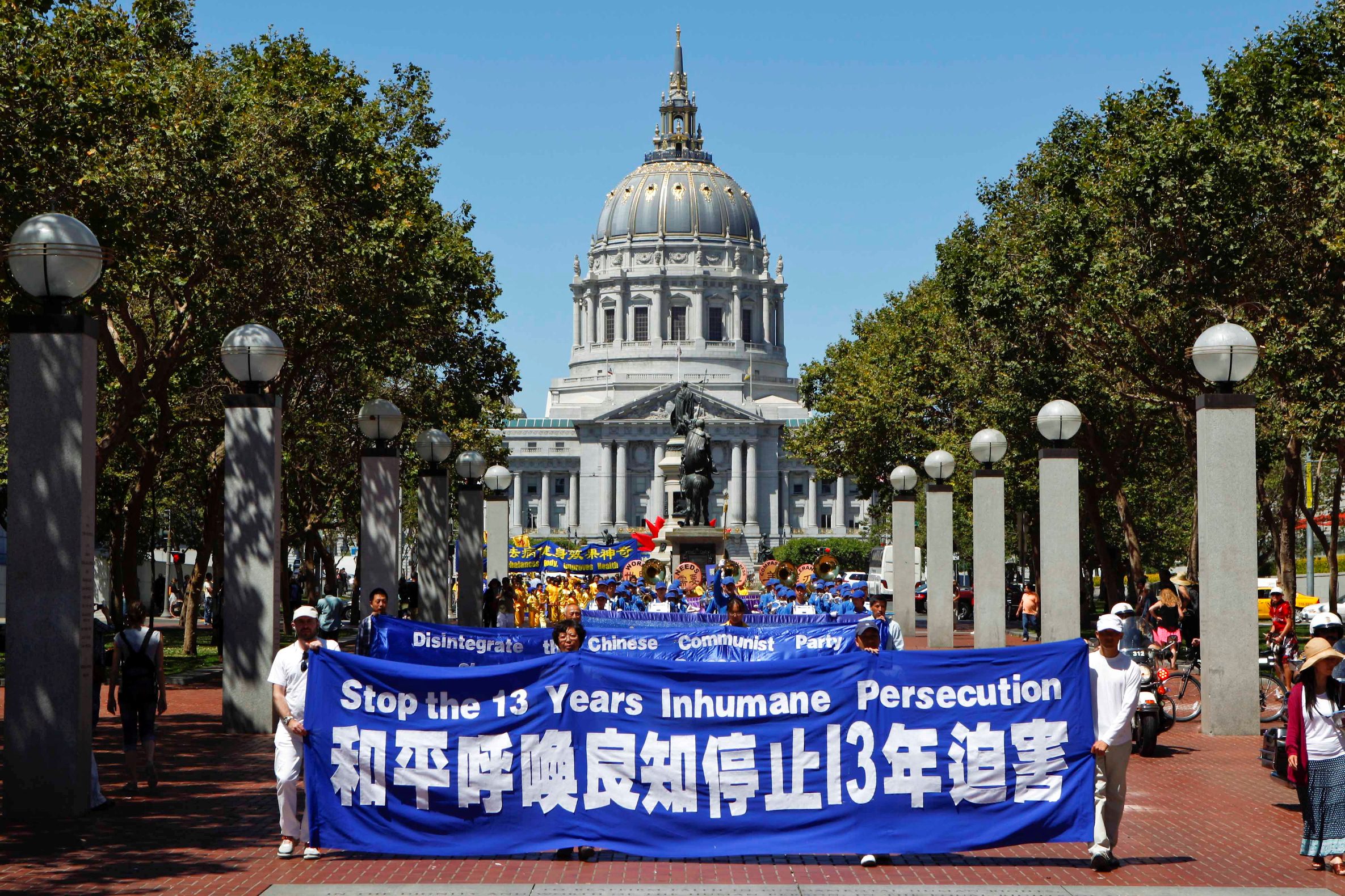 【明慧网二零一二年七月二十二日】(明慧记者李若云旧金山报道)在法轮功学员反迫害十三周年之际,旧金山湾区的法轮功学员于二零一二年七月二十一日,举办了大型游行集会活动,展现法轮大法的美好,并揭露中共的血腥罪行,同时呼唤民众的觉醒,解体中共,共同制止迫害。