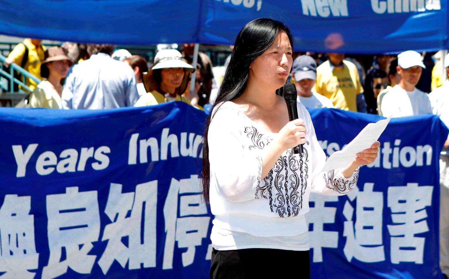 她说:“今天,我们能够站在这片自由的土地上,继续我们的信仰。可是,在中国大陆,依然有很多法轮功学员还在遭受迫害。但是,随着真相的传播,已经有越来越多的有识之士意识到,这场对信仰‘真、善、忍’的好人的迫害,其实是对所有人的迫害。在善与恶、正与邪面前,没有看客,每个人都必须做出自己的选择。”