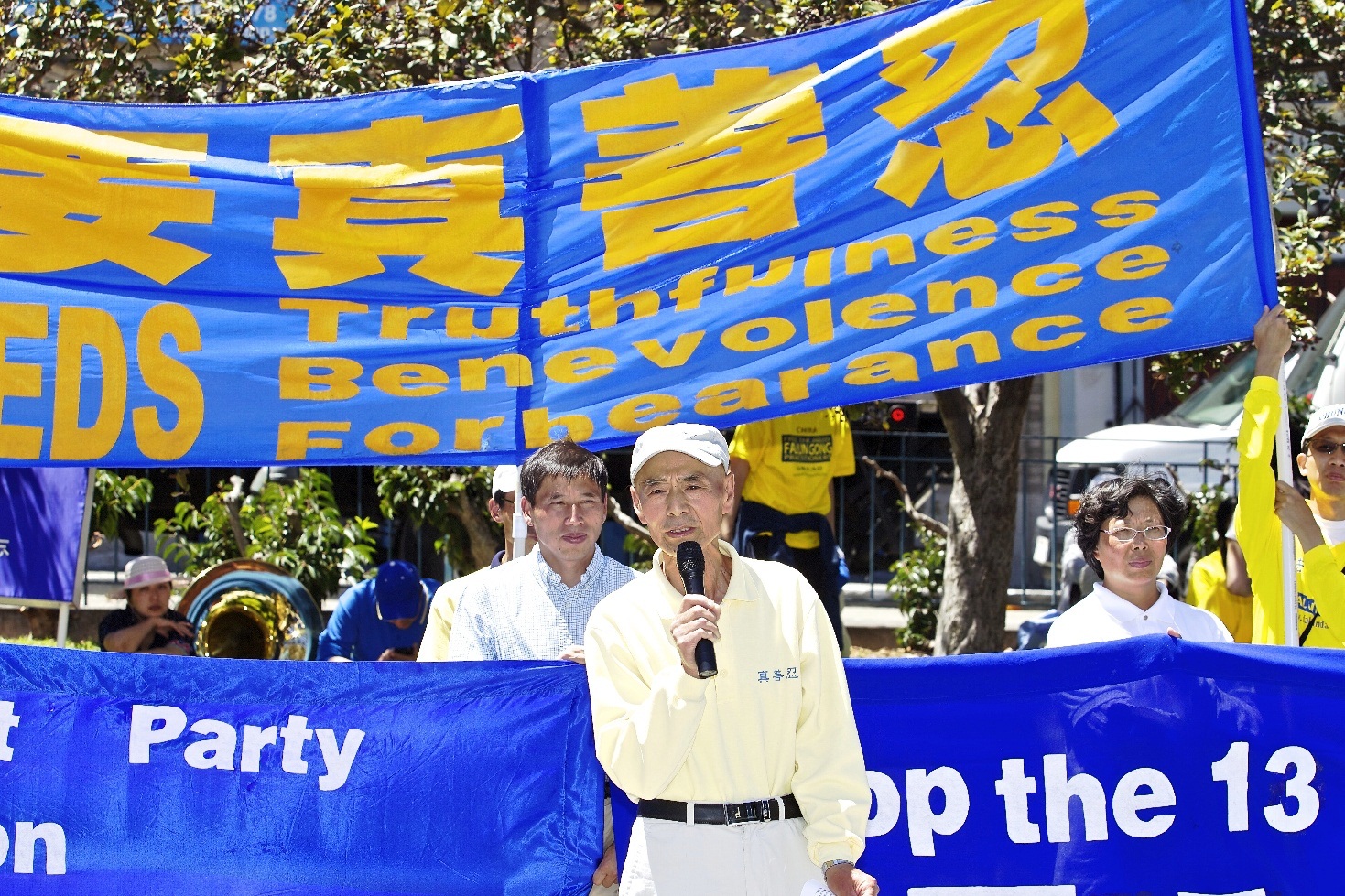 游行队伍从市政广场出发,一路经过繁华的市中心商业区,并环绕中国城的主要街道,最后行至华人聚集的花园角,并举办集会。在集会上多位中西方法轮功学员发言。