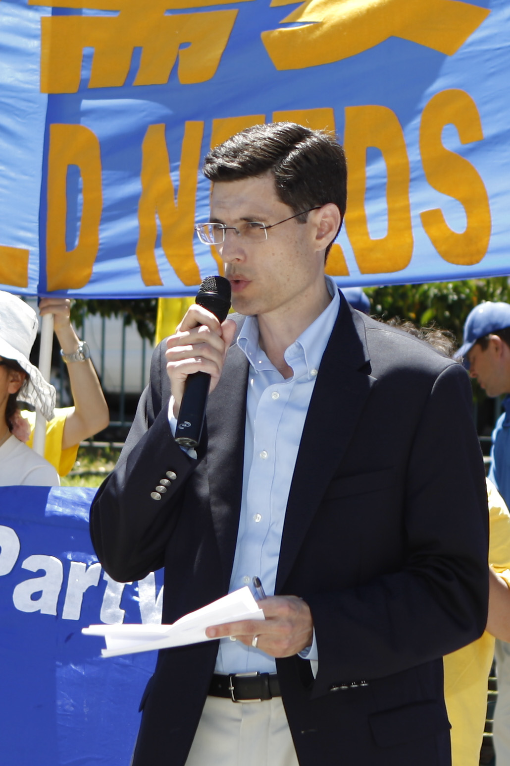 多位西人法轮功学员在集会上发言,他们以亲身经历告诉人们法轮大法的美好,及谴责迫害。