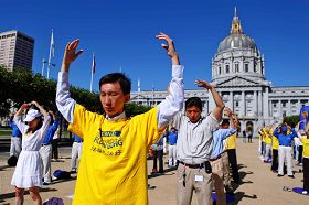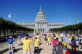 ![]() 二零一二年七月二十一日一早,旧金山学员汇聚在旧金山市政广场,以集体炼功拉开了当天反迫害十三周年系列活动的序幕。 |