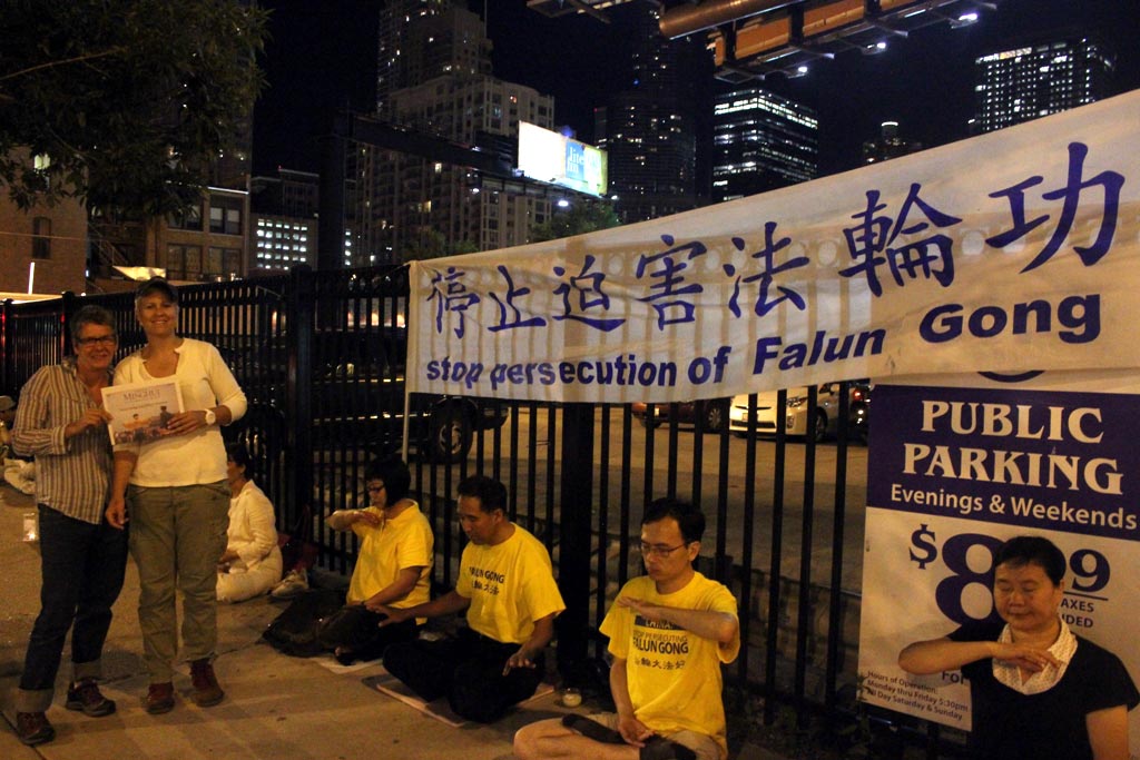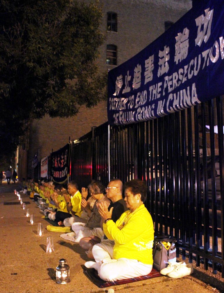 ![]() 芝加哥法轮功学员中领馆前烛光夜悼,抗议中共迫害 |