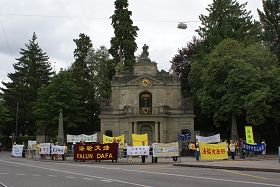 瑞士法轮功学员在首都伯尔尼突恩广场举行集会 |