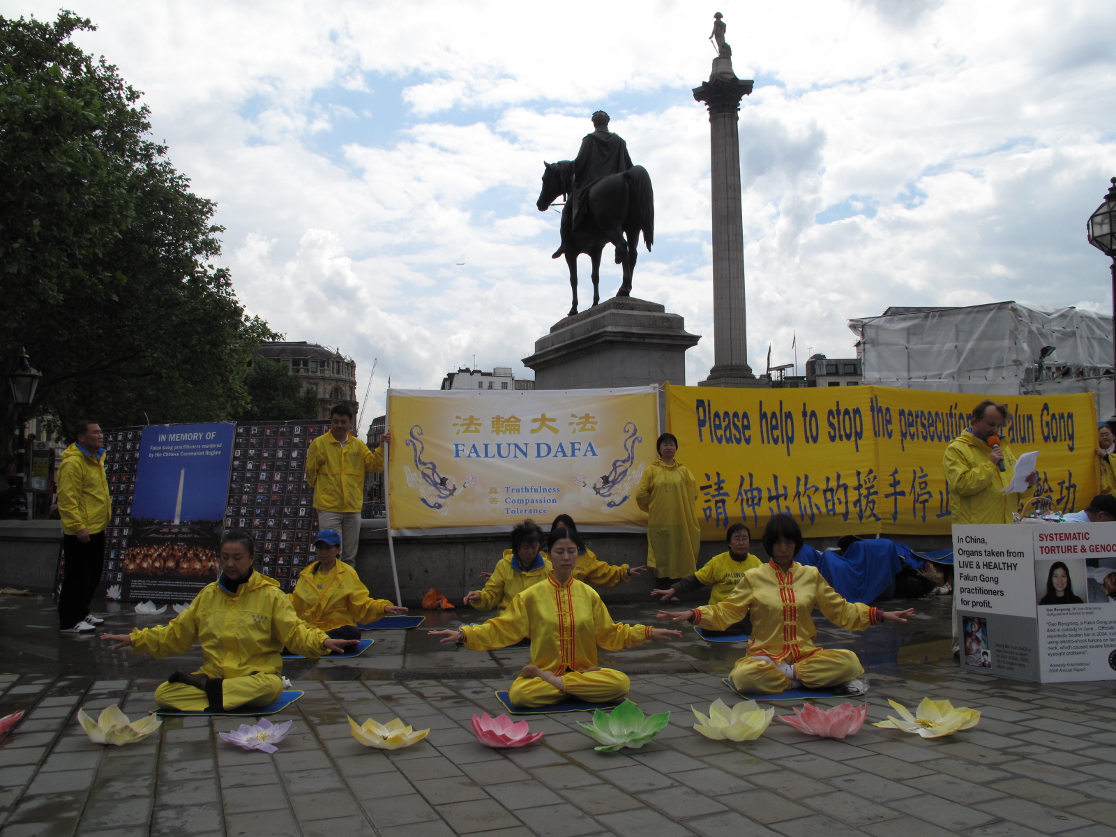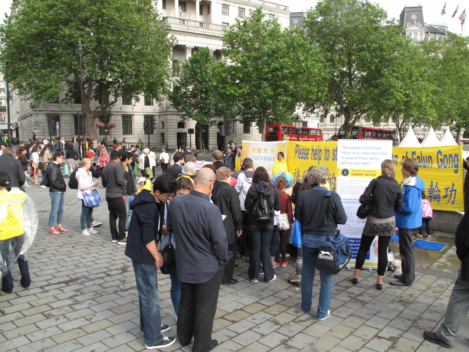 2012年7月20日英国法轮功学员在伦敦鸽子广场北角举行讲真相呼吁制止迫害活动