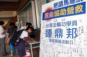![]() 营救钟鼎邦的签名展板汇集了民众的正义之声 |