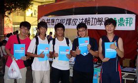 七月二十日,内坜高中毕业生返校参与大学考试分发入学志愿选填说明会,有近千名的学生返校。校长重视人权教育,支持校内法轮功教师学员在校园内举办征签活动,总务主任热情提供桌椅,在校园内摆设两个摊位,供学员讲真相征签时用。
