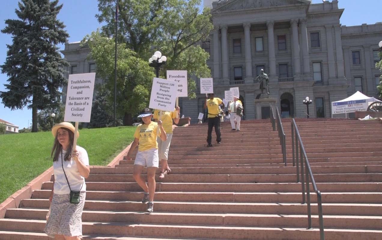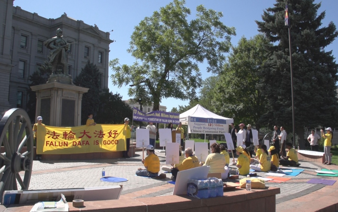 反迫害十三周年,丹佛法轮功学员在州政府阶梯广场前举行反迫害集会。