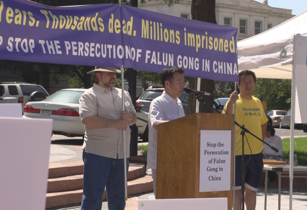 丹佛市的法轮功学员在集会讲述了他于一九九九年回中国探亲期间被骚扰、迫害的真相。