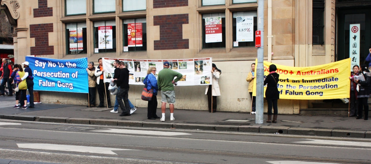 十三年前的七月二十日,中共独裁者一意孤行,开始了全面系统地对上亿信仰“真、善、忍”的法轮大法修炼者的非法迫害。时至今日,迫害仍在持续。为了帮助更多的人们明白真相和呼吁停止迫害,法轮功学员以在悉尼主街上拉开讲真相横幅,筑起“真相长城”,并摆放展板、派发真相资料等,向路人讲解中共的罪恶及正在发生的退党大潮。特别是揭露中共活体摘取法轮功学员器官的真相图片展,令路人纷纷驻足观看并了解真相;有不少路人在呼吁信上签名,谴责中共这种惨无人道的兽行。过往行人中还有不少是当地的华人,他们也在了解真相、认清中共的邪恶本质后纷纷声明退出中共。