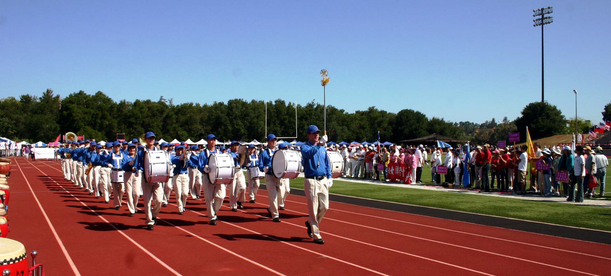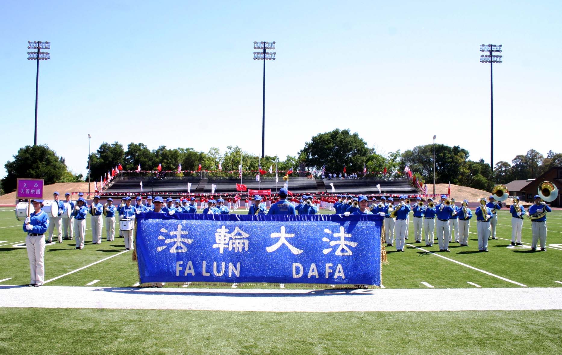 【明慧网二零一二年七月二十四日】二零一二年七月二十二日上午,在旧金山山麓学院运动场,第二十八届华人运动会开幕式隆重召开,美西天国乐团应邀参加运动会的入场分列式并作表演。