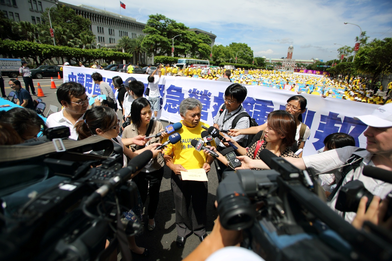 ![]() 台湾法轮大法学会理事长张清溪教授向媒体说明今天记者会的诉求。 |
