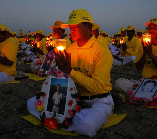 日落前夕,法轮功学员举行了烛光守夜活动,悼念在中国大陆被中共残酷迫害致死的法轮功学员。许多游客包括现场的警察都纷纷拍照留念,记录下这宁静祥和而又庄严肃穆的场面。