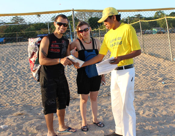 ![]() 印尼巴厘岛法轮功学员在Mertasari的沙努尔海滩讲真相 |