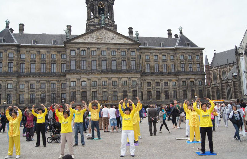 荷兰法轮功学员在达姆广场炼功