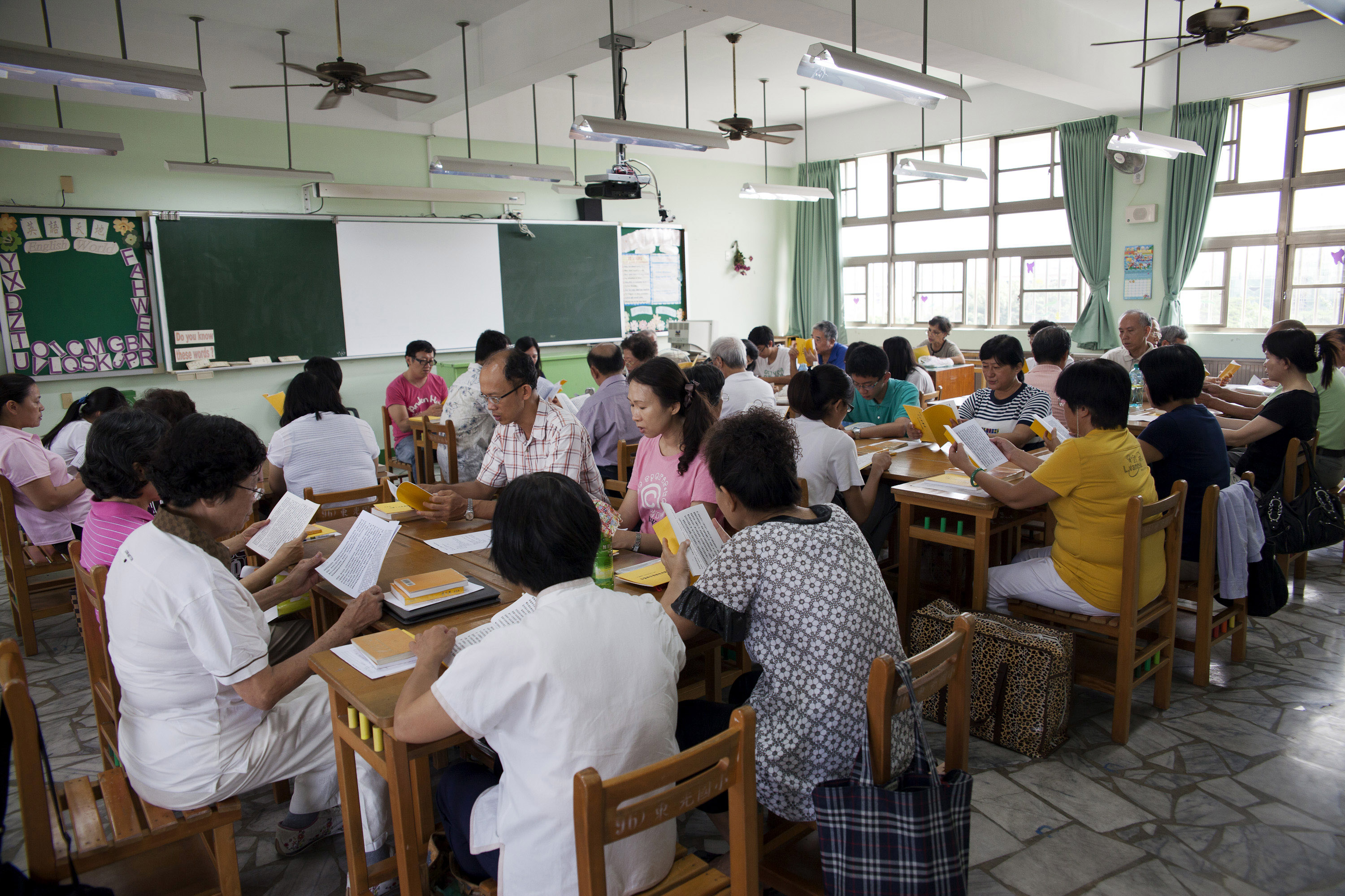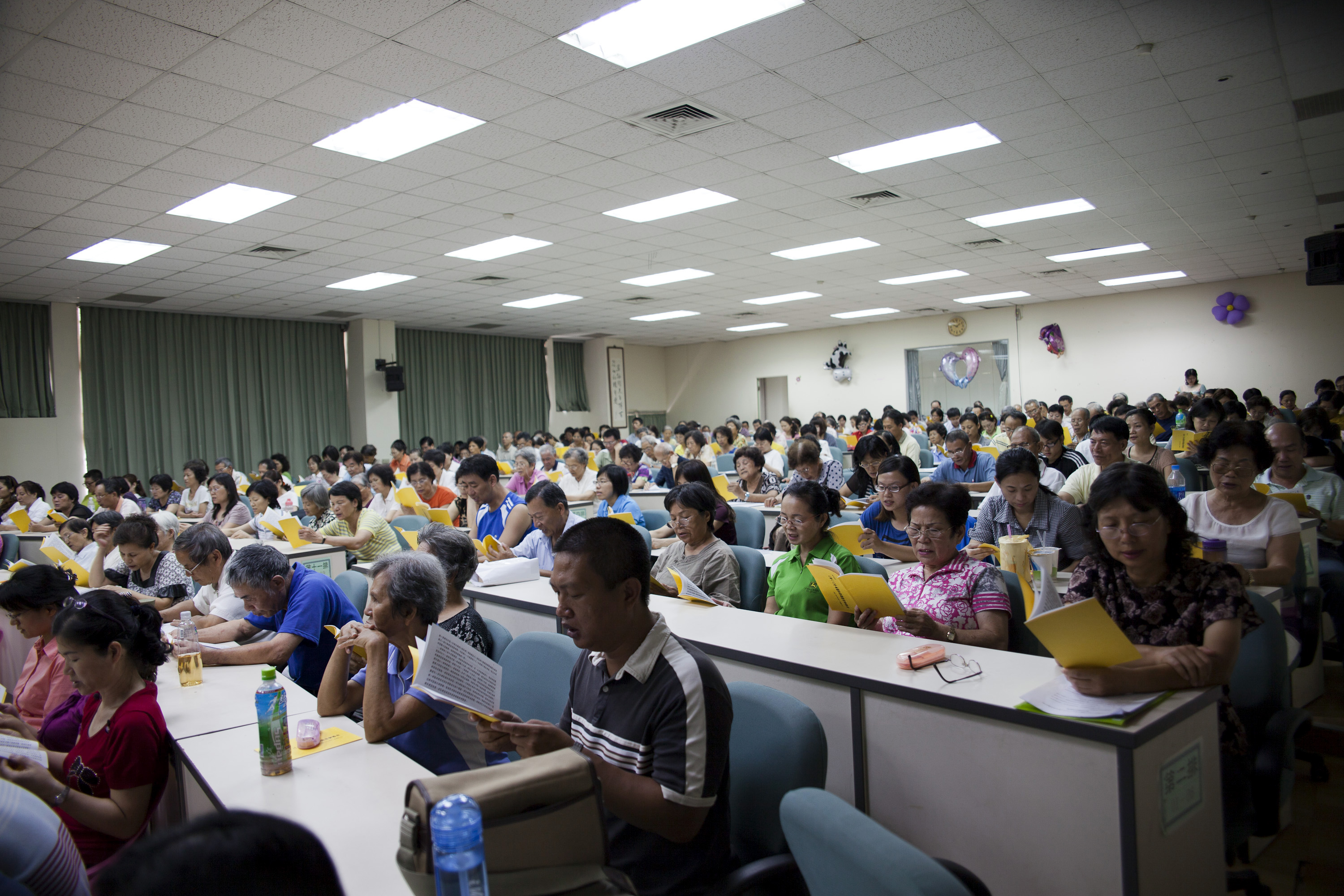 ![]() 来自台湾高雄七大区的法轮功学员在高雄市东光国小视听教室参加学法交流 |
