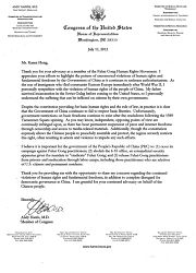 感谢你给我一个机会表达我对中共当局对民主政治、以及对基本人权和自由长期以来的忽略和侵犯。感谢你坚持为中国人民呼吁的努力。