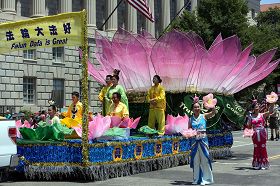美国陆军军官希恩说:“这是个自由的国家,人人都应该拥有信仰自由。世上每个人都不应该因信仰遭受迫害。”希恩说,他特别喜欢法轮功学员制作的莲花花车,很美。