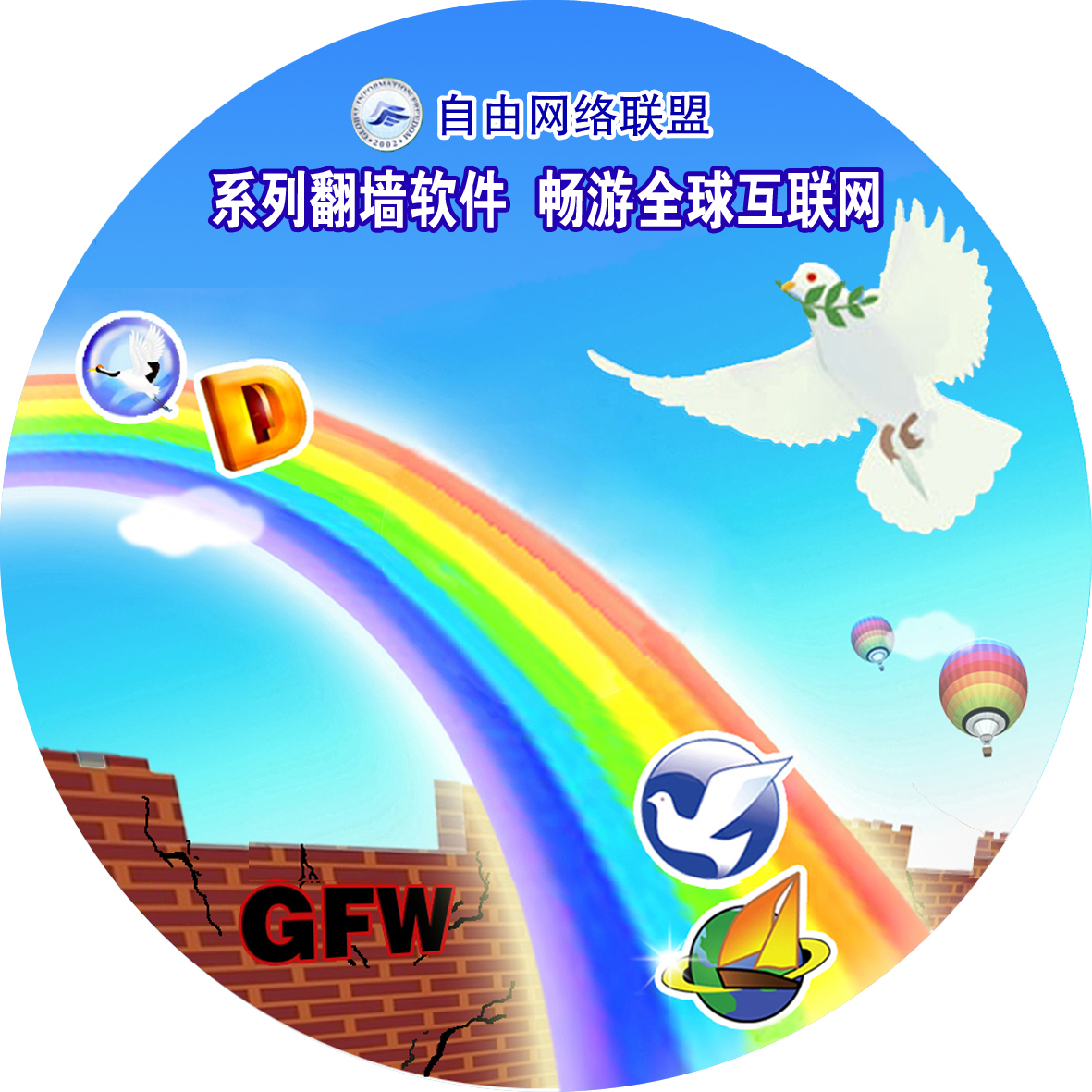 主要用途:本光盘可以帮助大陆民众突破信息封锁,了解真相,适用于同修更新制作進行传播,尤其适合于大陆普通民众相互之间自由传播。广传翻墙软件,找到生命久远期待!