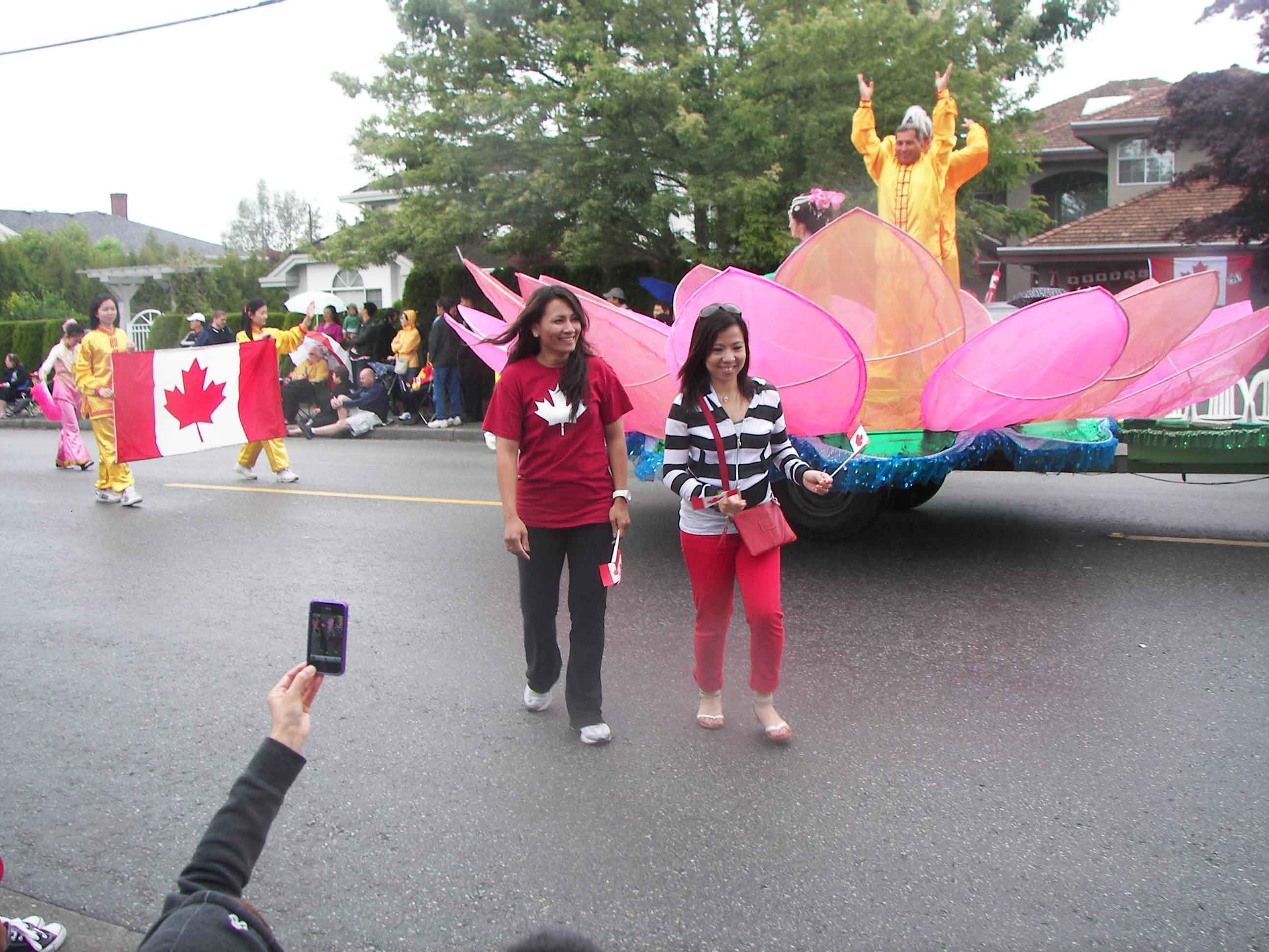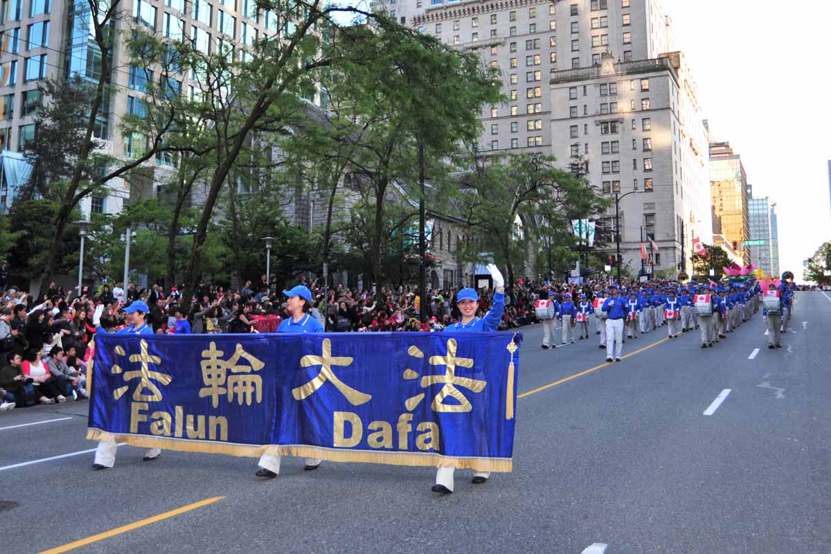 法轮功学员还参加了七月一日晚在温哥华市中心举行的国庆大游行,受到热烈欢迎。